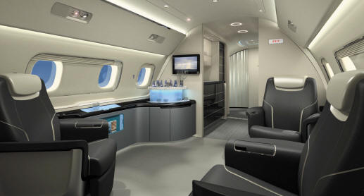 La cabina utiliza los materiales m? sofisticados de la categor? y la gran variedad de configuraciones atiende a todas las necesidades de los pasajeros con espacio suficiente para trabajo, descanso y reuniones. Los art?ulos de bordo incluyen opcionales como la tecnolog? Wi-Fi, acceso a Internet y Electronic Flight Bag (EFB). Un amplio portaequipajes trasero, presurizado y convenientemente accesible en vuelo, tiene capacidad total de 9.140 litros (9,14 metros c?icos o 323 pies c?icos) y es el m? grande entre los competidores.